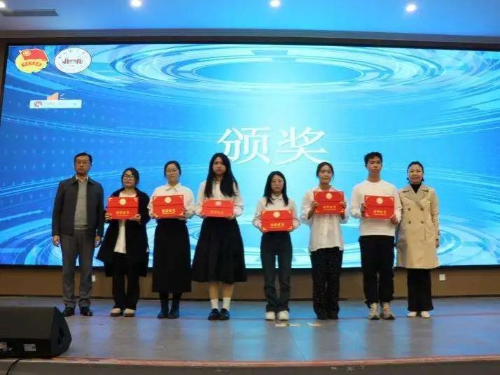 蒋玮老师、陈思思老师为荣获挑战杯省级奖项的队伍颁奖。